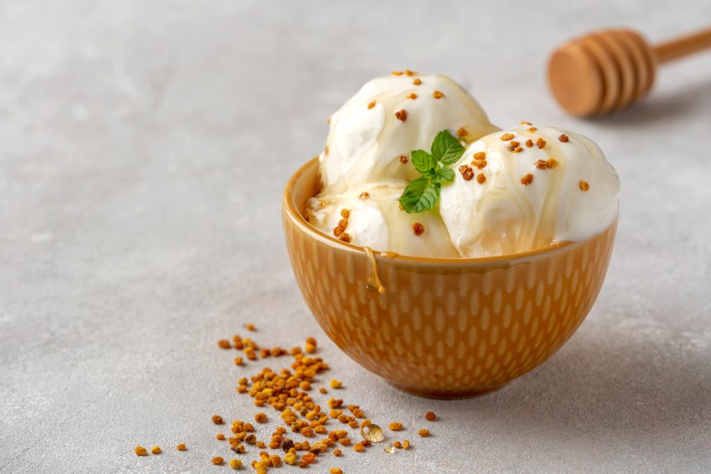 Kook de melk. Klop de eidooiers met de honing en suiker tot een romig mengsel en voeg het aan de afgekoelde melk toe. Verwarm het mengsel au bain-marie voor 15 minuten op laag vuur. Zet het afgedekt in de vriezer. Na 1 uur roer het los met een vork en zet het terug in de […]