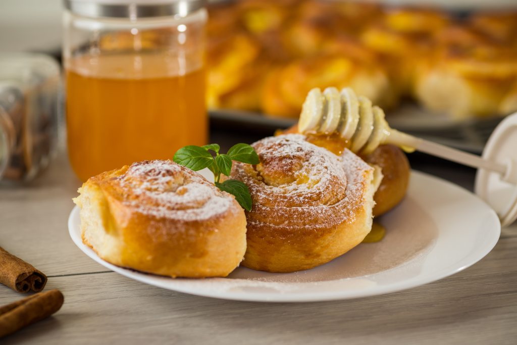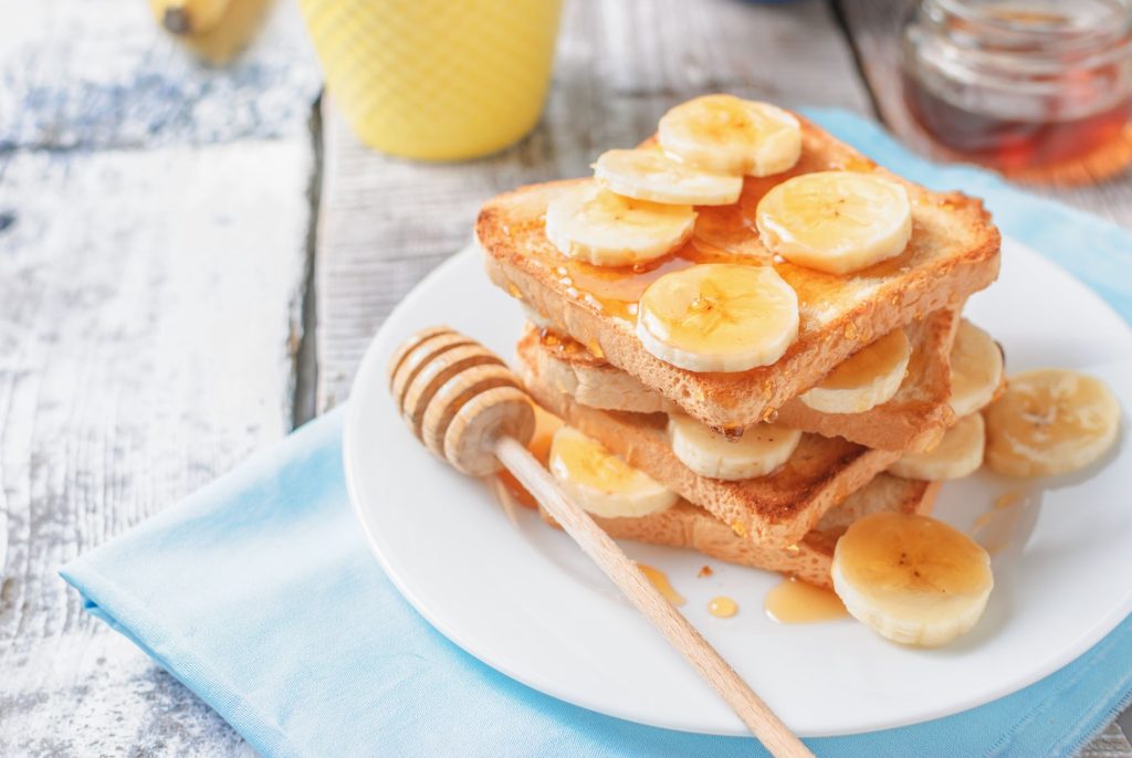Wentelteefjes met gekarameliseerde perziken en Melvita light